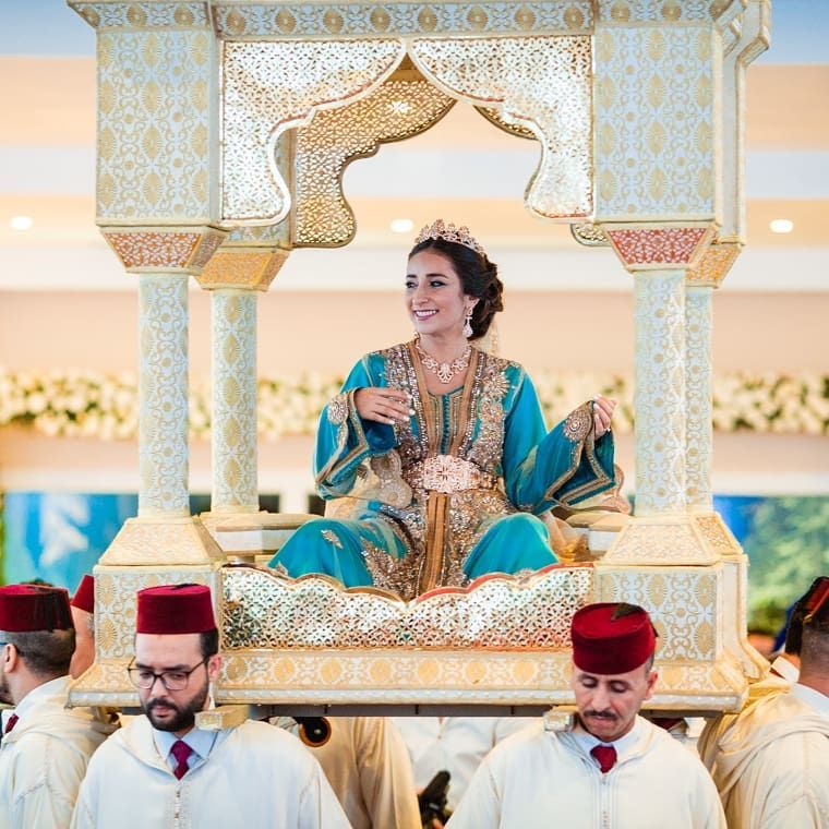 Uno de los momentos cumbre de la noche es la entrada de los novios al salón de celebraciones. Cada uno es paseado en una especie de trono o plataforma ricamente decorada llamada Amariya, que es llevada a hombros por varios hombres (dkakya) mientras bailan y la música tradicional suena a todo volumen . Los invitados reciben a la pareja con una lluvia de yuyus, pétalos y aplausos . Los novios son conducidos a un trono elevado (a menudo una estructura en forma de media luna) desde donde presidirán la fiesta y recibirán las felicitaciones .