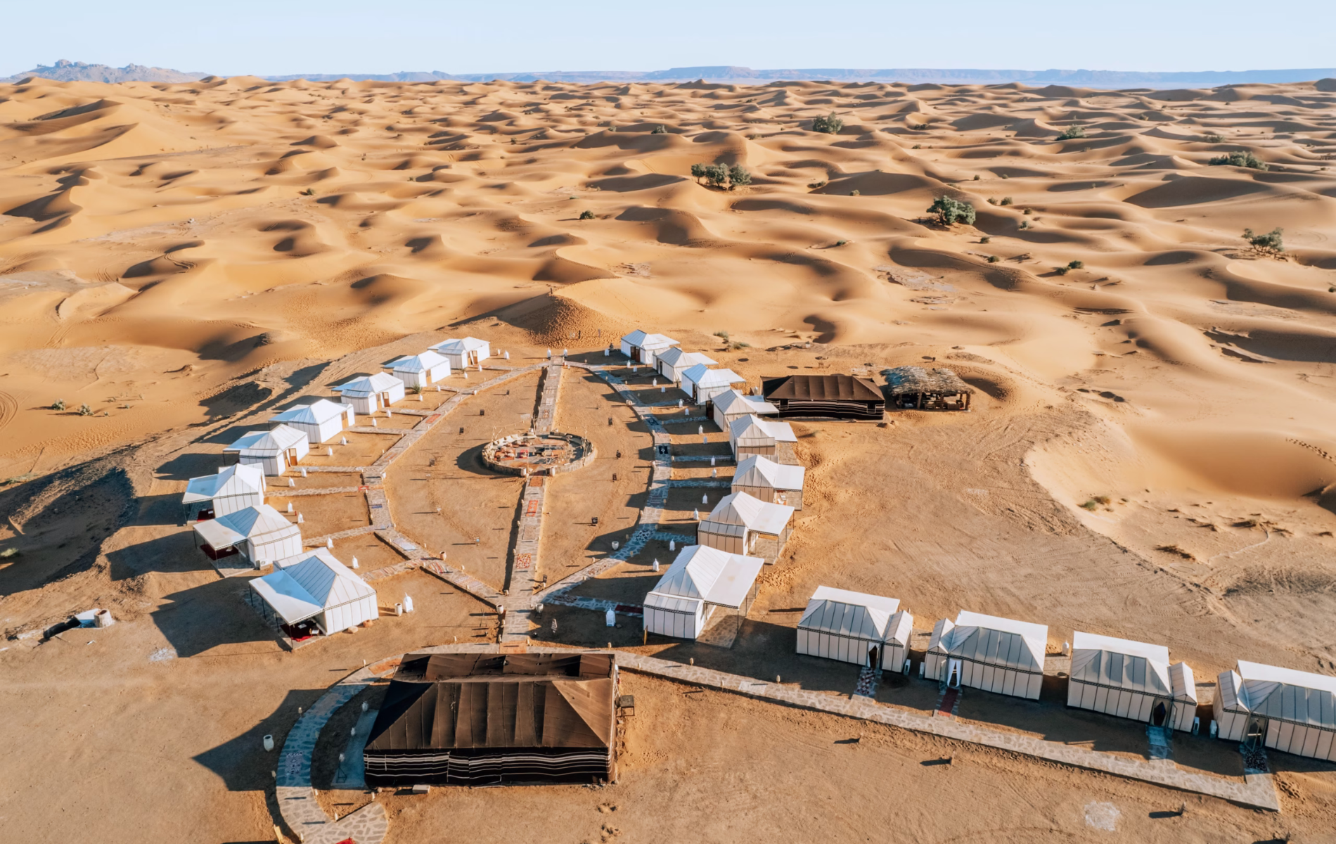 Por un lado, durante el trek, viajarás en camello a través de un paisaje deslumbrante. Por otro lado, vivirás la vida nómada alojándote en un campamento tradicional. Allí podrás disfrutar de comidas típicas y música marroquí bajo las estrellas.