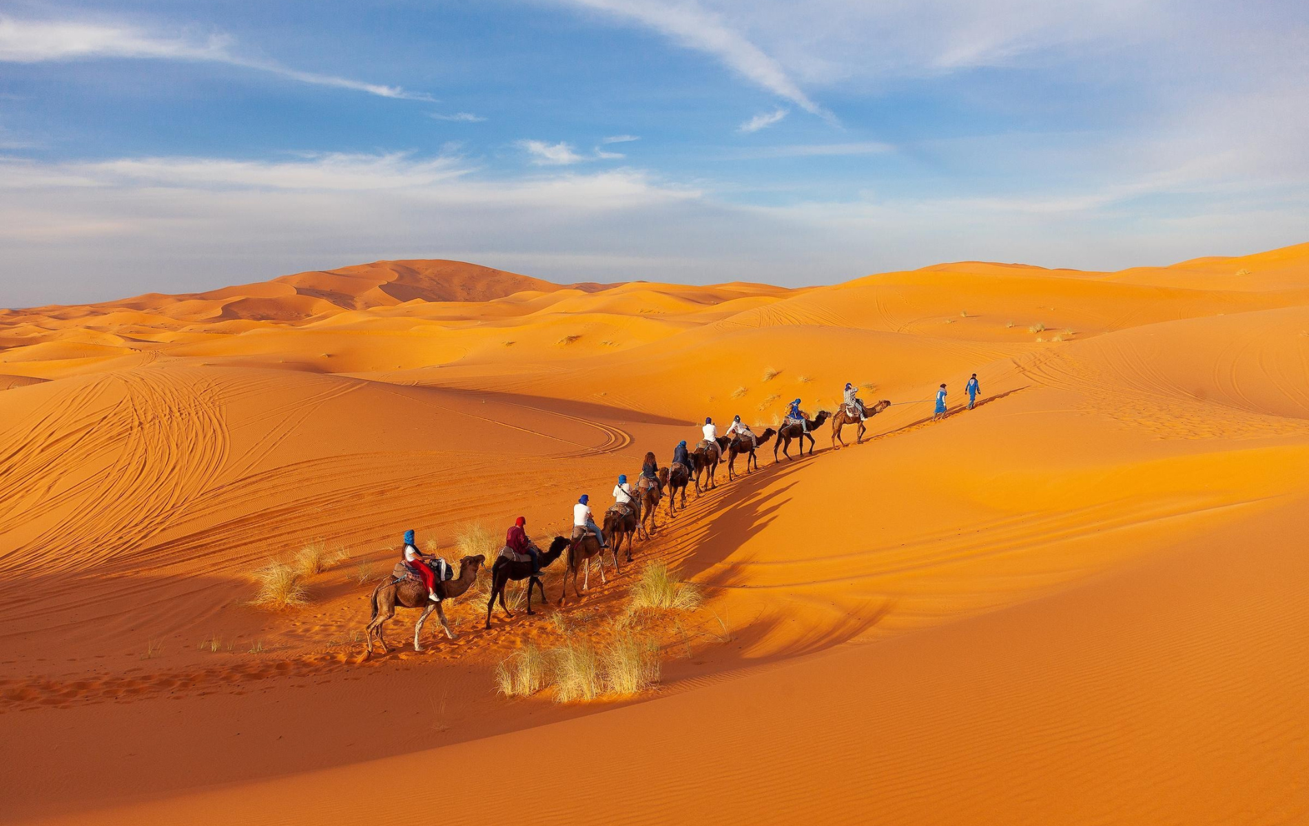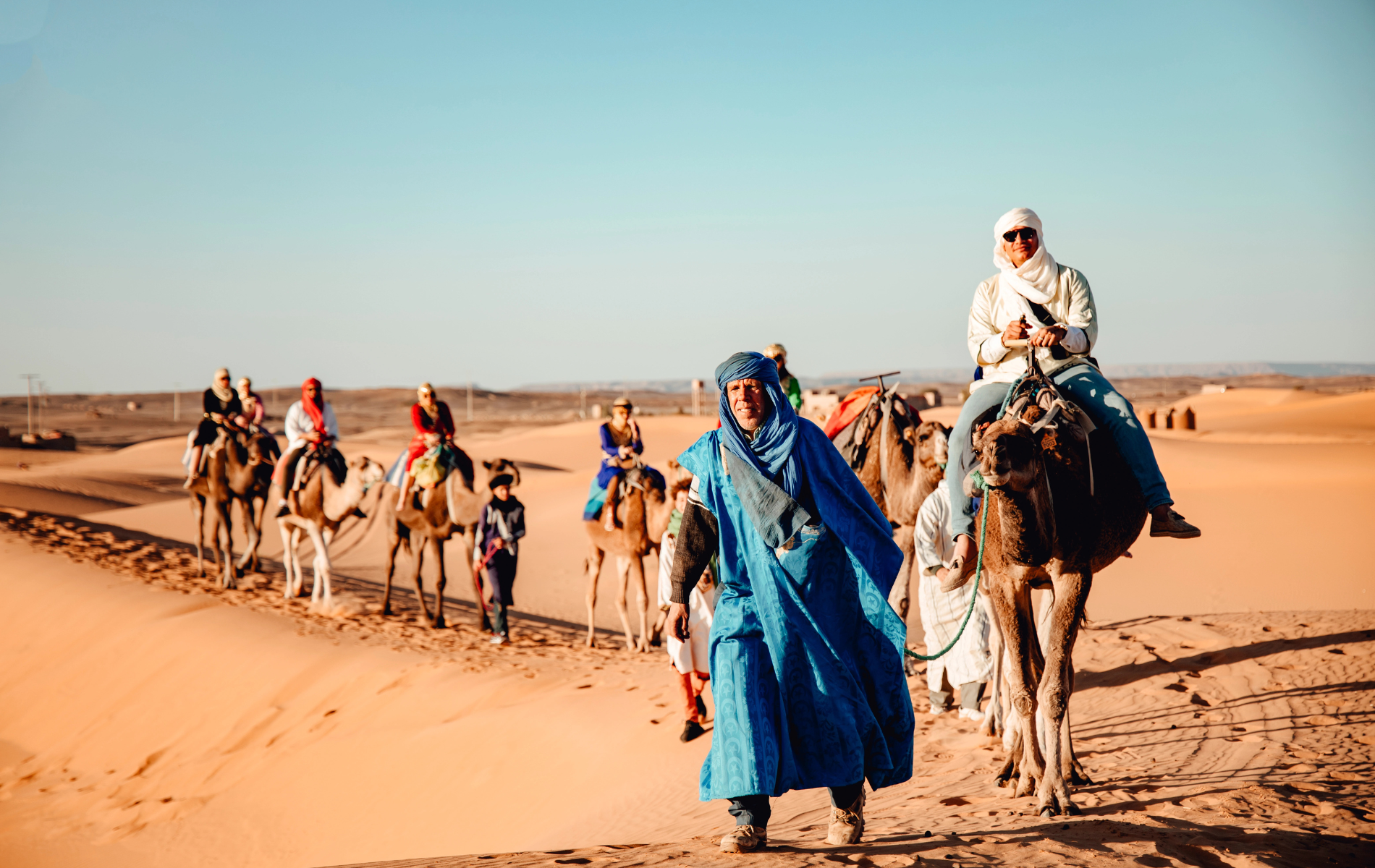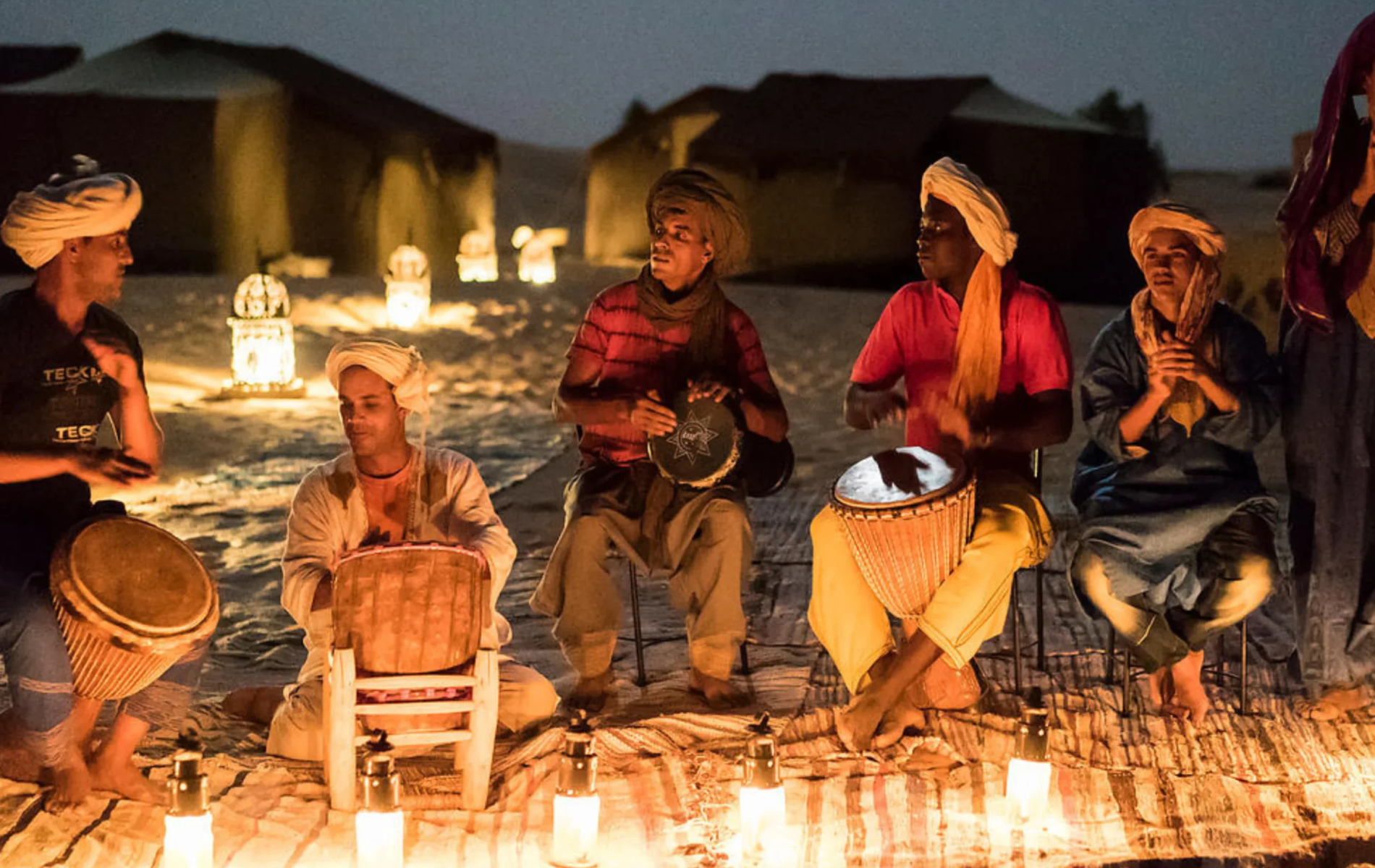 El viaje comienza visitando a los nómadas que aún viven en tiendas bereberes en medio del desierto del Sáhara; vea cómo viven y comparta una taza de té con ellos. Después nos dirigiremos a las minas de Meffis para ver cómo funcionan. A continuación, visitaremos el pequeño pueblo de Khamilia, hogar de los gnaoua, donde conocerá de primera mano su música y su forma de vida.