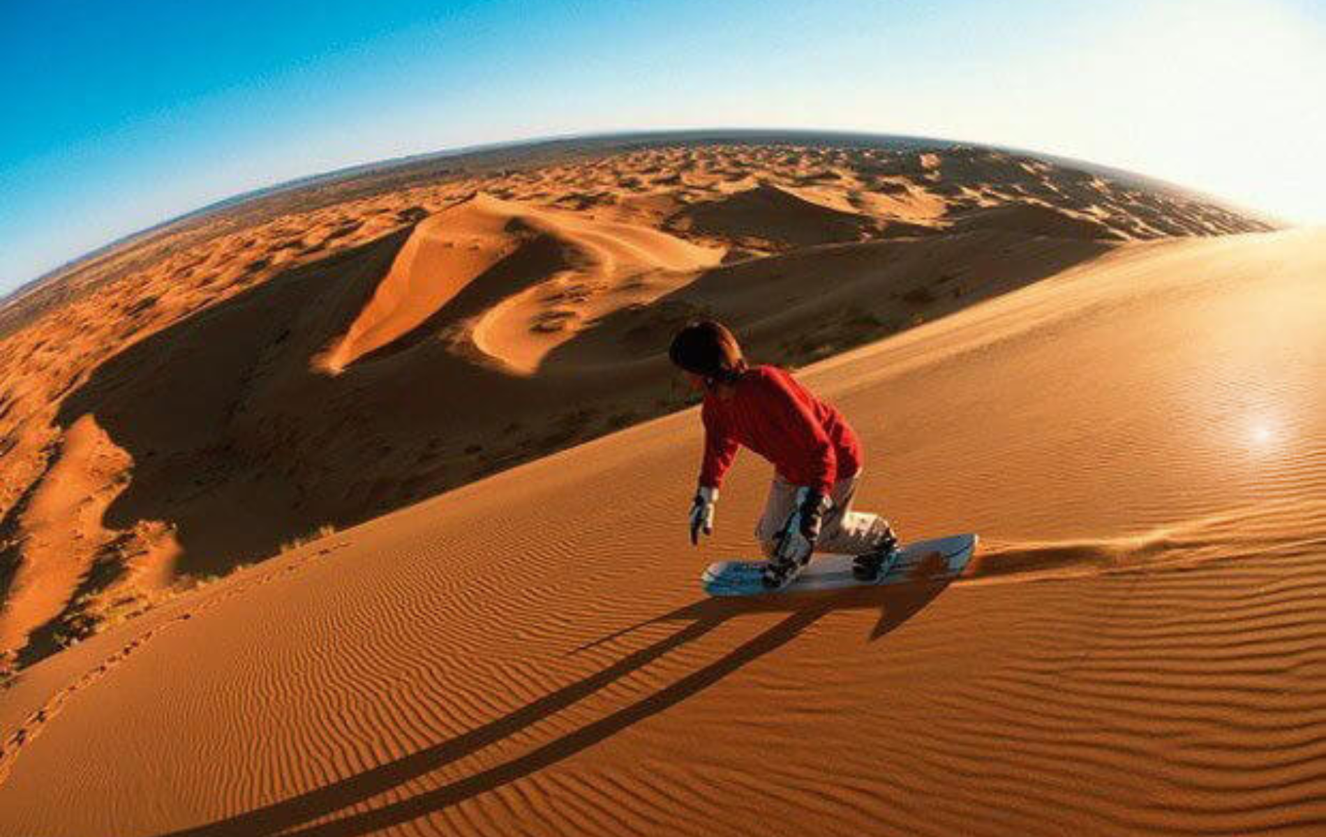 A la mañana siguiente, el desayuno se servirá al aire libre, bajo una palmera. A partir de ahora, viajará al desierto para pasar unos minutos extraordinarios con los caminantes y comer con ellos. Por la tarde, podrás ir al campamento e ir en dromedario para realizar diversos ejercicios en las crestas, cogeremos nuestras cargas y empezaremos a hacer sandboard como el snowboard pero de una forma cada vez más divertida.