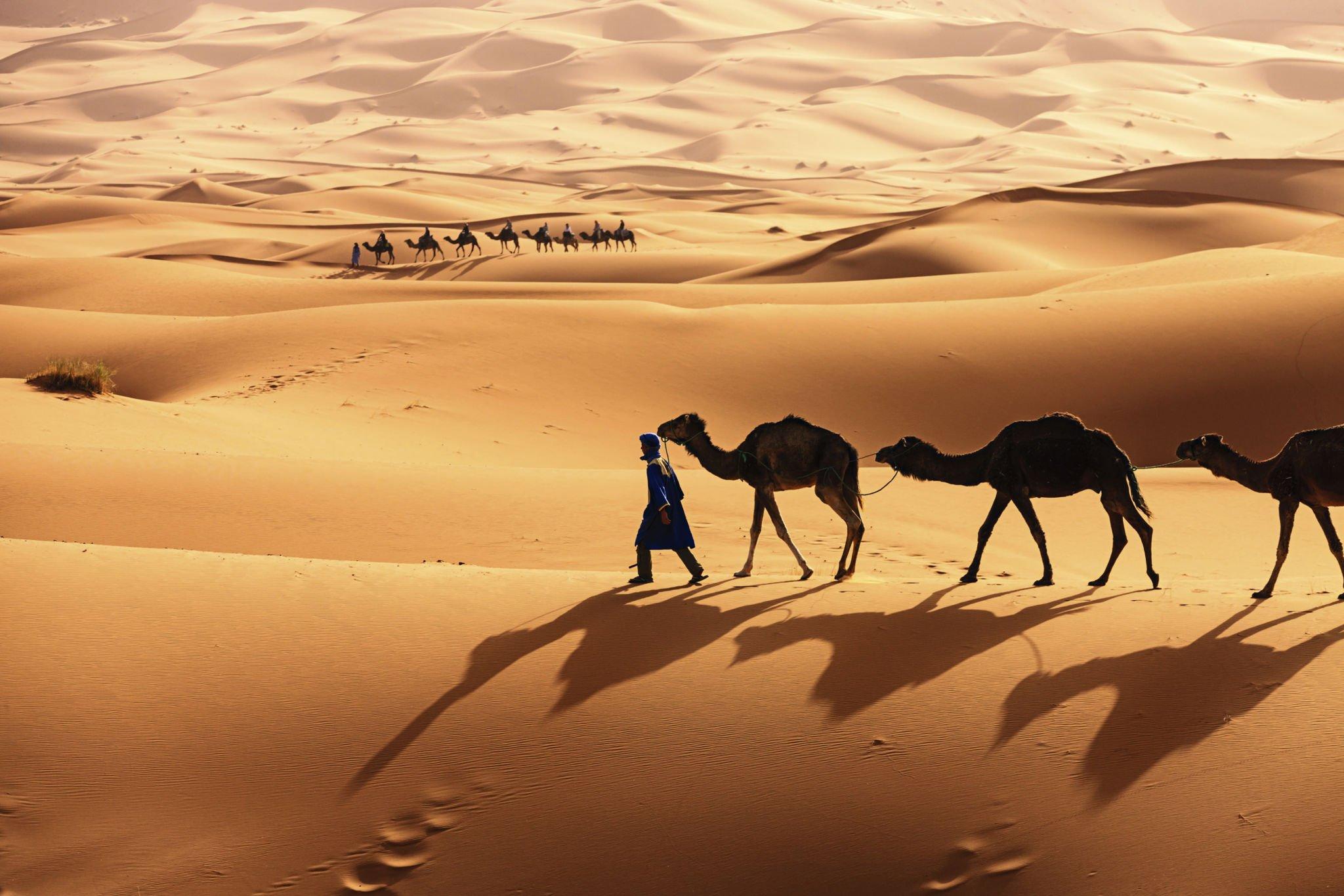 Día completo de inmersión en el Sáhara. Visitarás asentamientos nómadas para conocer su forma de vida y el pueblo de Khamlia para un concierto de música Gnawa. Según la temporada, podrás ver el lago de Merzouga y sus flamencos. Al atardecer, te adentrarás en las dunas para llegar a un campamento de lujo en el desierto. La cena bajo las estrellas y la serenidad del Erg Chebbi te envolverán en una noche mágica e inolvidable.